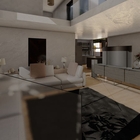En su interior presenta una doble altura en la sección de la escalera, lo que aporta una favorable iluminación ambientando cálidamente los espacios.