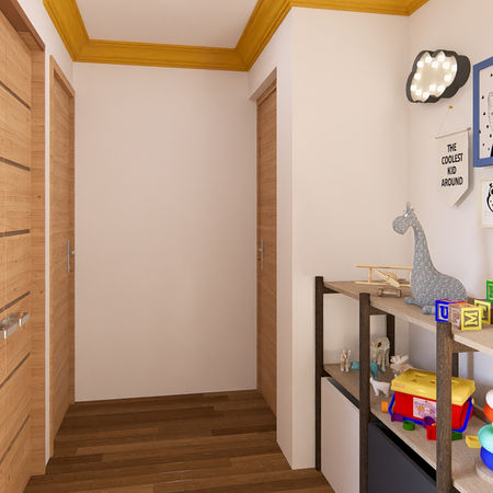 Remodelación interior de Casa-Habitación en áreas de habitaciones, sala de estar, estudio. Se maneja una paleta de color cálida resaltando la moldura interior de losa y el uso de lambrin acabado madera. En la habitación infantil se diseña el área de juegos y cuna donde se implementa un papel tapiz en muro de cabecera, aportándole personalidad y serenidad.