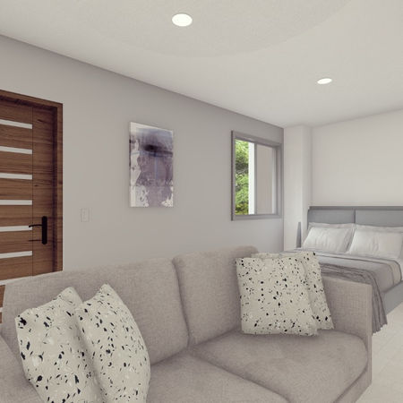 Diseño de espacio para estudiantes, donde se trata de aprovechar todo el espacio posible, con un aprovechamiento de luz e instalaciones a través de ductos