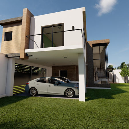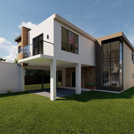 Casa habitación moderna, cuenta con una doble altura generando espacios amplios, mejora de iluminación y ventilación, a su vez crea la unificación de áreas compartidas.