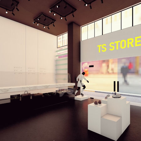 Diseño donde se aprovecho la doble altura de 5m que tiene el edificio, haciendo énfasis en la venta de calzado de distintas marcas