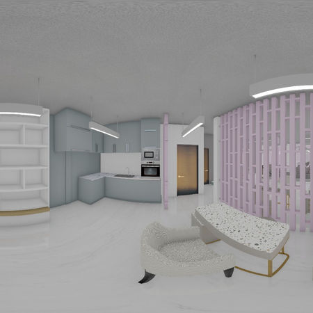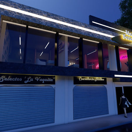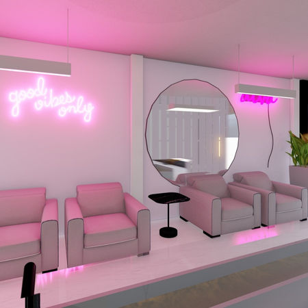 Mobiliario cómodo y lugares espaciosos para el trabajo , con color neutro y luces LED de color rosa, teniendo espejos grandes para mejor visualización de los espacios y las clientas.
